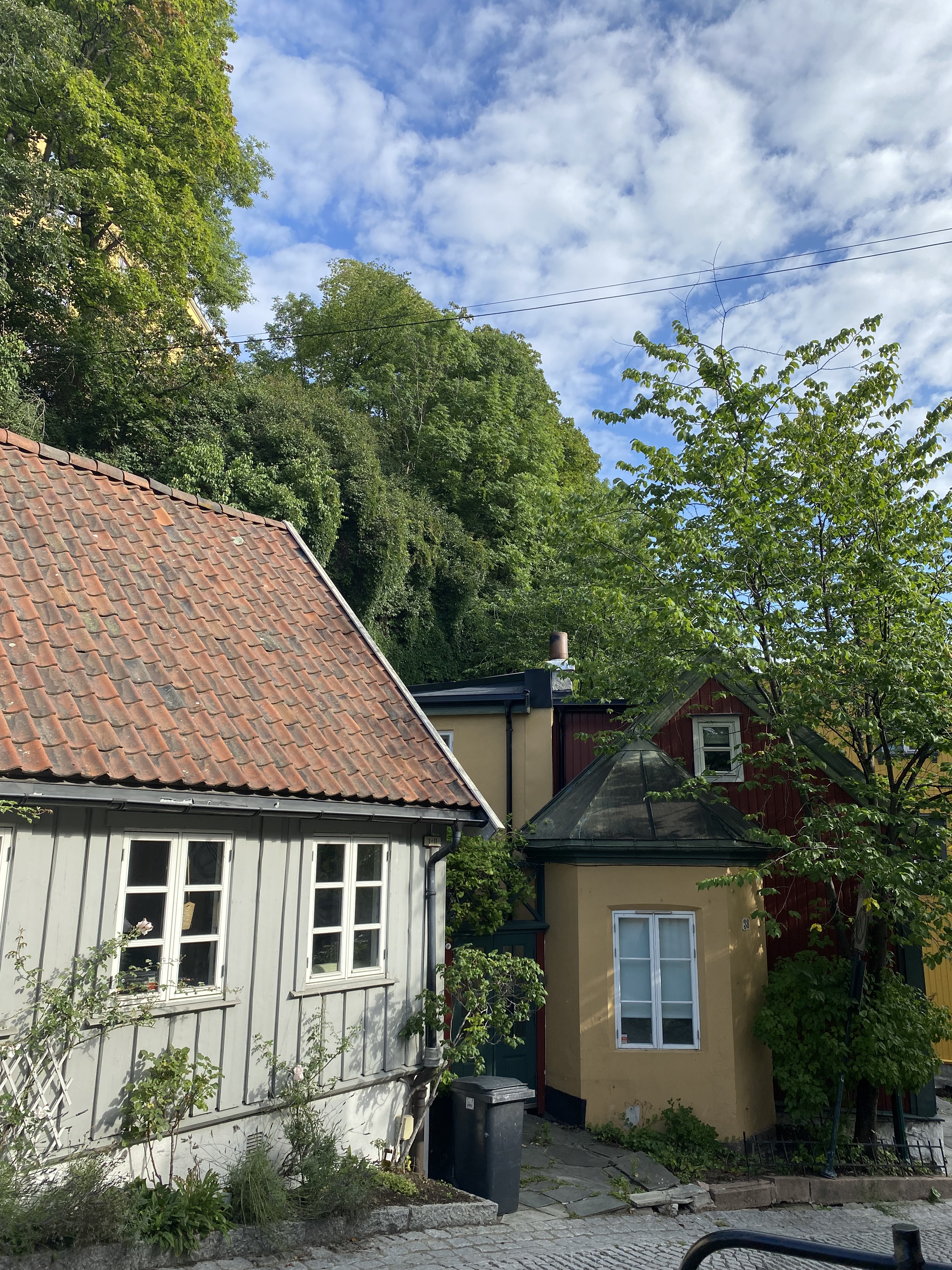 A nice street with very cute houses in traditional Norwegian style